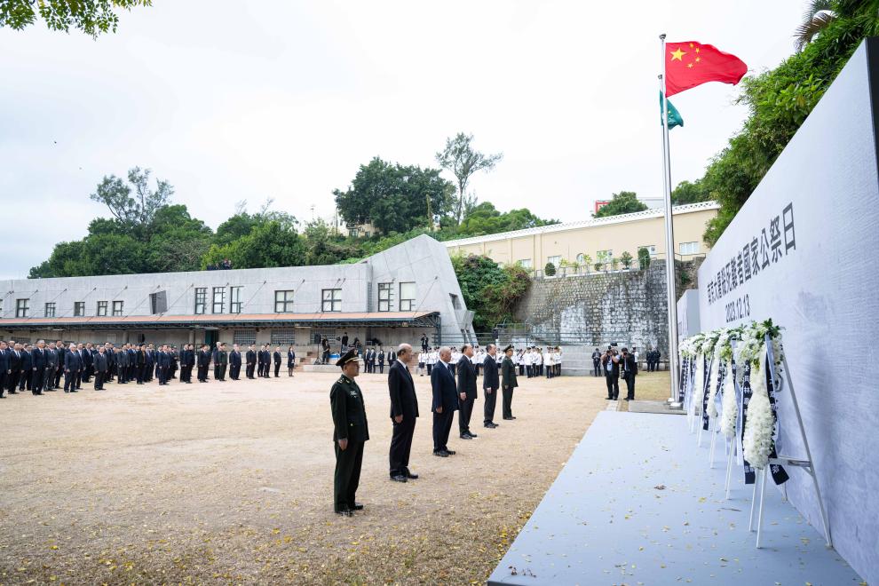 新华社澳门12月13日电(记者刘刚、李寒芳)12月13日是南京大屠杀死难者国家公祭日,澳门特区政府当日在路环保安部队高等学校操场举行公祭悼念仪式。