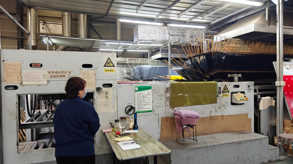 在山东国升印铁制罐有限公司车间,流水线正印刷包装用铁皮材料。新华社记者萧海川 摄