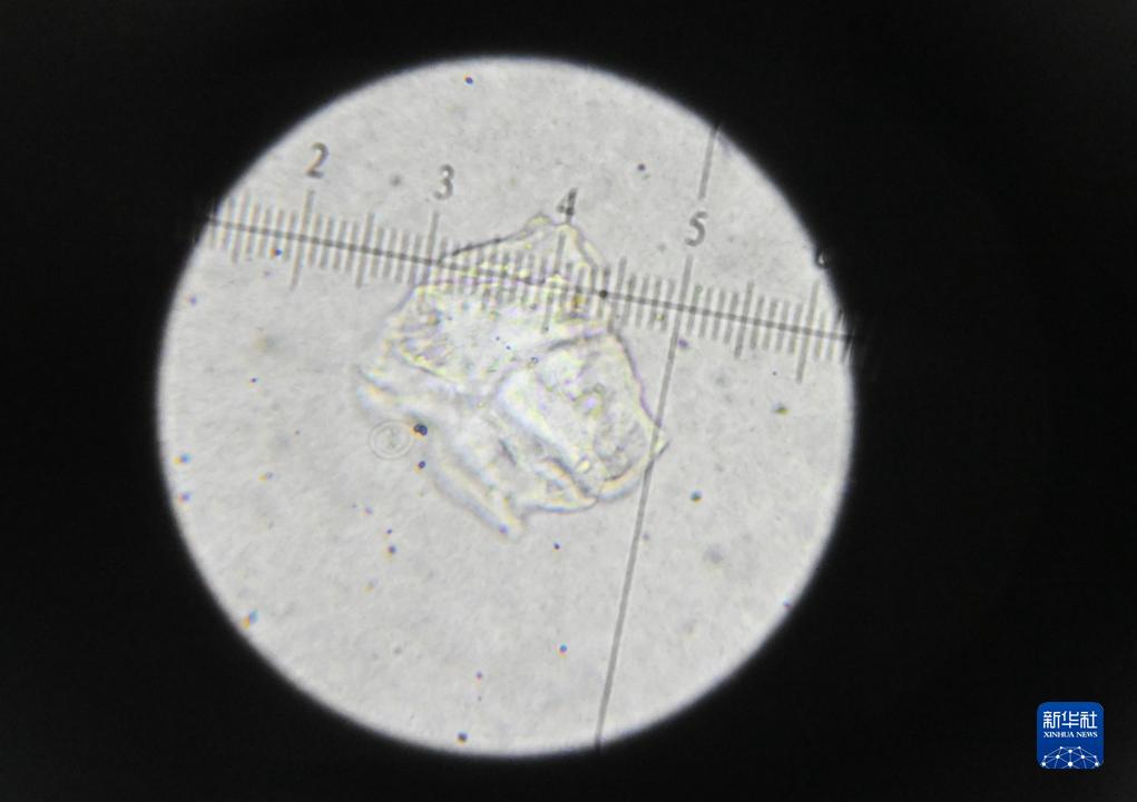 这是12月12日在天津市鸵鸟墨水有限公司研发部门的显微镜下拍摄的“鸵鸟”碳素墨水颗粒细节。