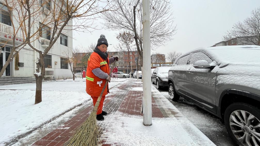 在北辰区京津路段一座天桥附近,环卫工人朱冬梅刚刚完成积雪清扫,桥面恢复如初,仅有零星雪印。“为了大家能平安出行,我们有责任把工作做好!”朱冬梅冒着汗又马不停蹄地走向另一条积雪路段。