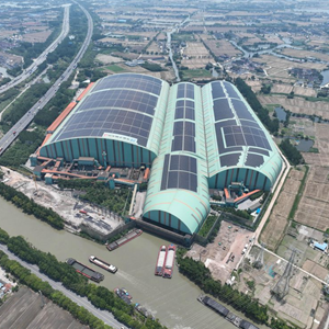 这是江苏苏州市常熟市龙腾特种钢有限公司码头料场屋顶光伏(无人机照片,2023年6月9日摄)。新华社记者 季春鹏 摄