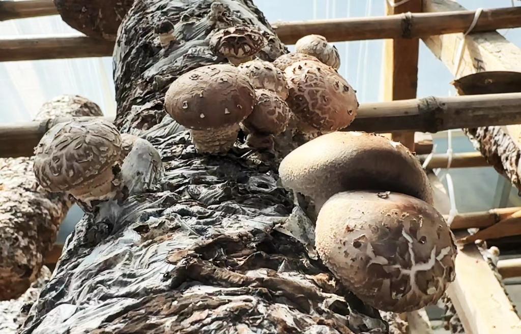 “这是个好东西啊,只要人勤快、管得好,种出的鲜香菇一斤能卖8块钱,晒干了一斤能卖40块钱。”宋有龙说,从2023年5月收获第一茬菌菇以来,9座香菇棚、1座木耳棚已经为村集体带来48万元收入。