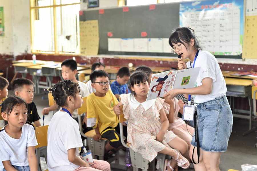 大学生志愿者“西瓜”说:“我自己就是一名乡村留守儿童,小时候最渴望的就是爸爸妈妈能陪在身边。所以我想成为一名志愿者,在短暂的暑假里陪这些弟弟妹妹玩耍、听他们说说心里话、教他们认识外面更广阔的世界、教他们学会自我保护。我希望他们能更快乐地长大!”