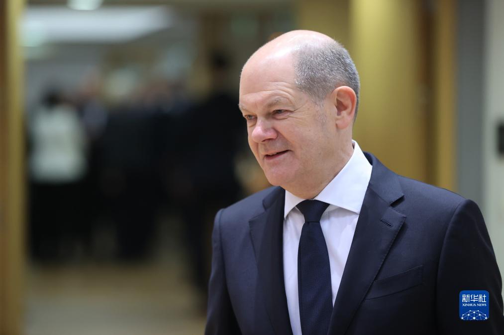 12月15日,在比利时布鲁塞尔,德国总理朔尔茨出席欧盟峰会。新华社记者 赵丁喆 摄