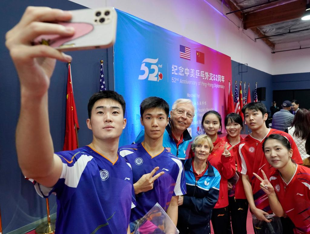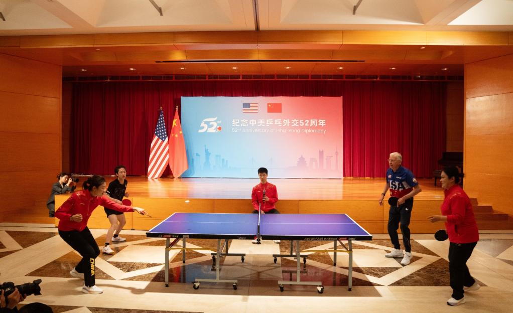 新华社华盛顿12月15日电(记者熊茂伶 胡友松)中国驻美国大使馆日前举办中美“乒乓外交”52周年纪念活动,300多名在美各界嘉宾出席。其间,中美双方组成混合队伍举行友谊赛,一起重温历史、赓续友情。