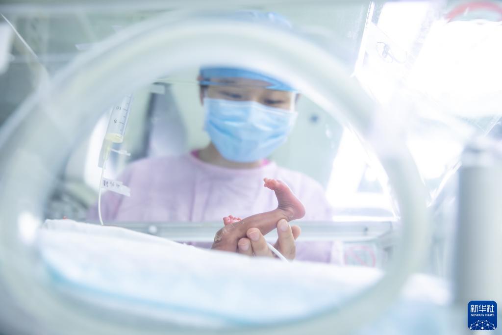 5月9日,在北京协和医院新生儿重症监护病房(NICU),护士杨楚嘉查看早产儿情况。