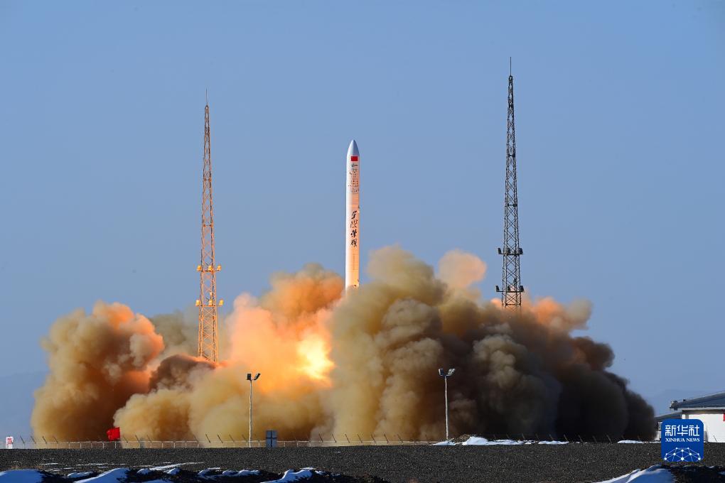 12月17日15时0分,双曲线一号商业运载火箭在我国酒泉卫星发射中心发射升空,将搭载的迪迩一号卫星顺利送入预定轨道,发射任务获得圆满成功。新华社发(汪江波 摄)