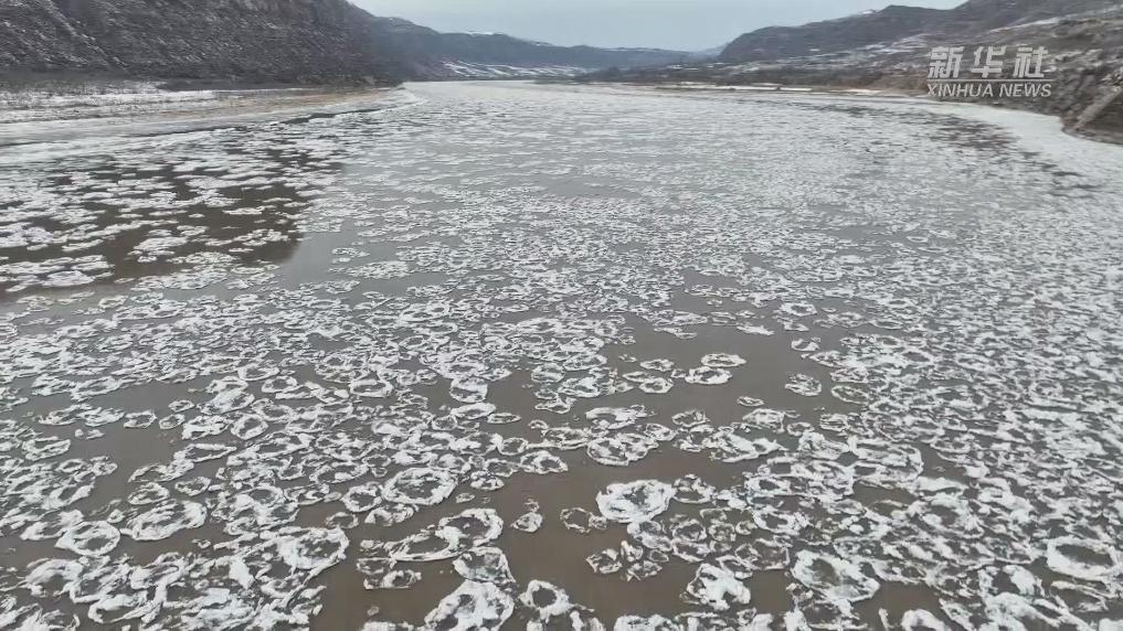 受冷空气影响,位于山西省临汾市永和县的黄河乾坤湾12月17日出现大面积流凌。