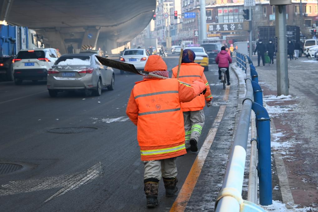 于洪区吉力湖街,环卫工作者除雪完毕。新华社记者刘艺淳 摄