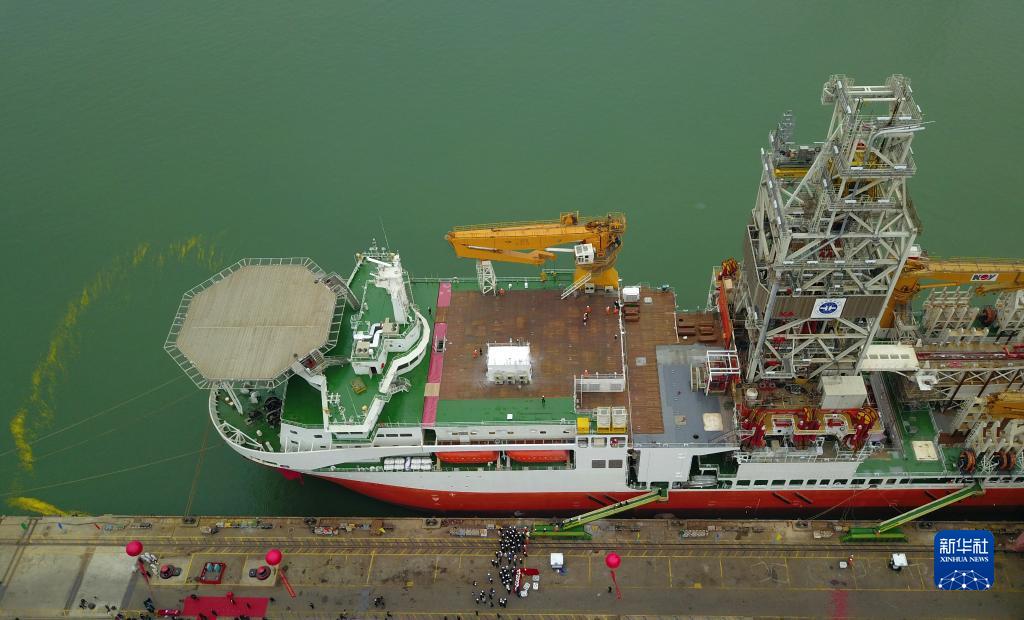 当日,我国自主设计建造的首艘大洋钻探船正式命名为“梦想”号,并在广州南沙首次试航。