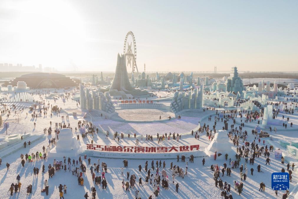当日,第二十五届哈尔滨冰雪大世界正式开园,园区内全部娱乐设施已就位,欢迎世界各地游客共同开启一场“冰雪盛宴”。本届冰雪大世界园区总体规划面积81万平方米,为历届规模最大,共使用25万立方米的冰和雪打造千余个冰雪景观。