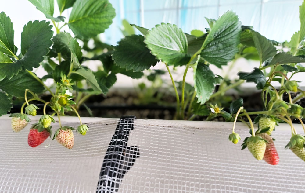 宁夏泾源县香水镇卡子村温棚里的草莓已经挂果。新华社发