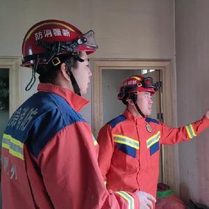 12月19日,在克州阿图什市哈拉峻乡皮羌村,克州消防救援人员对护边员值班室进行勘察。新华社发(董志刚摄)