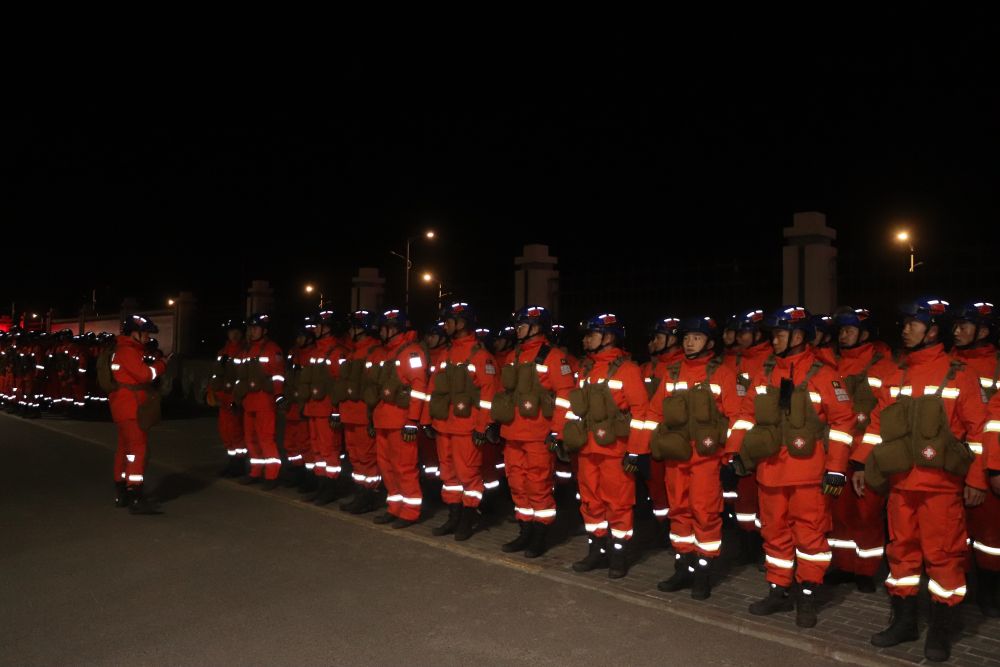12月19日凌晨,武警甘肃总队机动支队官兵紧急出动赴震区展开救援工作。新华社发(侯崇慧 摄)