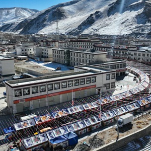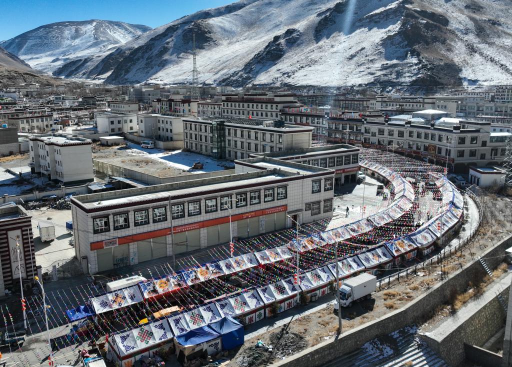12月14日,西藏日喀则市康马县冬季物资文化交流会现场航拍(无人机照片)。新华社记者晋美多吉 摄