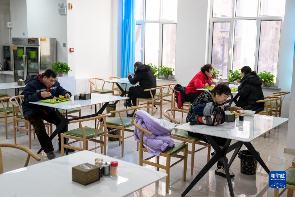 12月19日,老年人在回民区奔腾社区“为老餐厅”用餐。