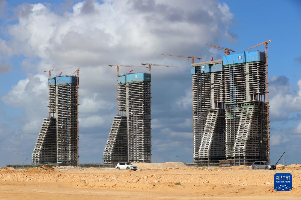 这是12月18日拍摄的埃及阿拉曼新城超高综合体项目建设工地。