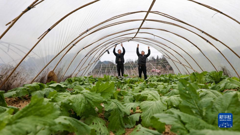 12月19日,在贵州省黔东南苗族侗族自治州岑巩县天马镇杜麻村蔬菜种植基地,村民给蔬菜加盖保温膜抵御寒潮。