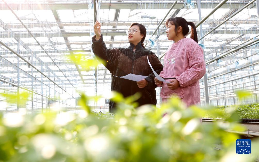 12月19日,气象工作人员在河北省邢台市南和区贾宋镇后寺上村指导农户进行大棚蔬菜温湿度管理。