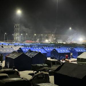 寒夜渐深,许多帐篷的灯光还亮着,一些受灾群众围坐在火炉旁,谈论着明天的生活。帐篷里透出的灯光,在寒冷中泛着温暖的光芒。