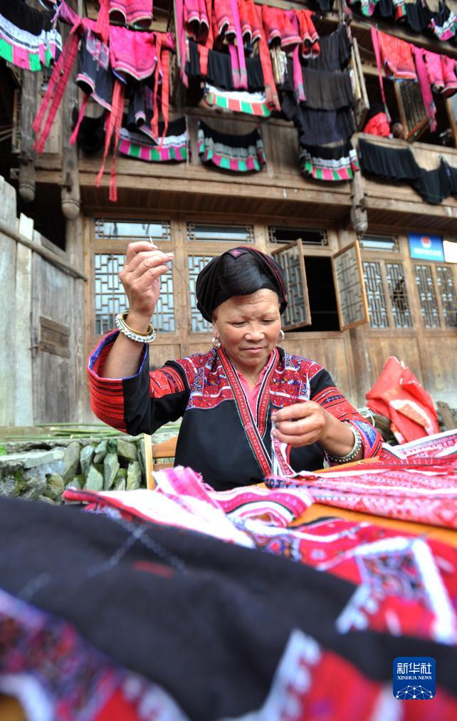 在广西龙胜各族自治县各个红瑶村落,女子身上穿着具有民族特色的服饰,绚丽多姿,是一道道行走在层层梯田间的迷人“风景”。