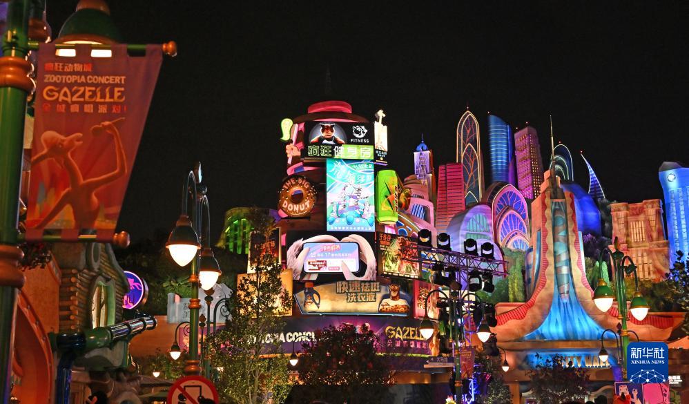 12月19日晚拍摄的上海迪士尼乐园“疯狂动物城”园区。