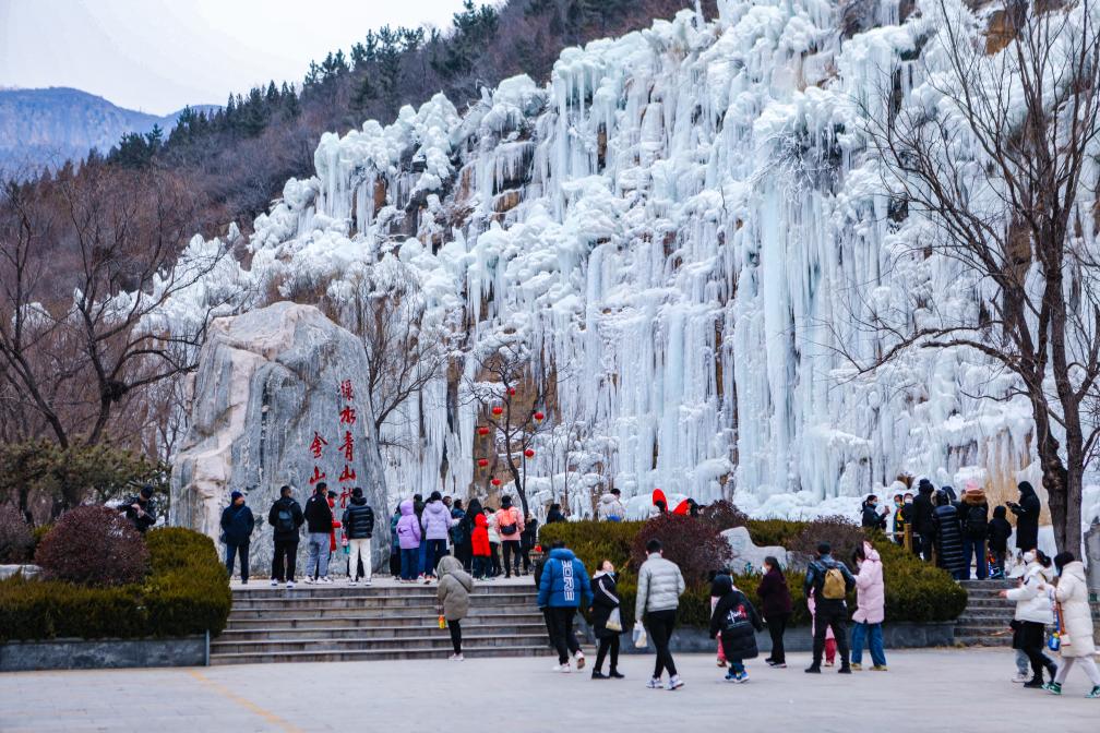 2023年12月,潭溪山第九届冰瀑节启幕,游客在此感受冰雪文化的魅力。(受访者供图)
