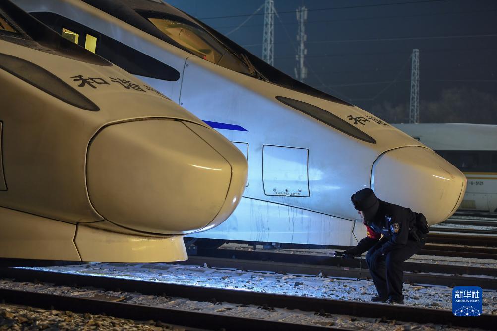 12月19日,在长春动车所,民警王占东在进行巡查工作。