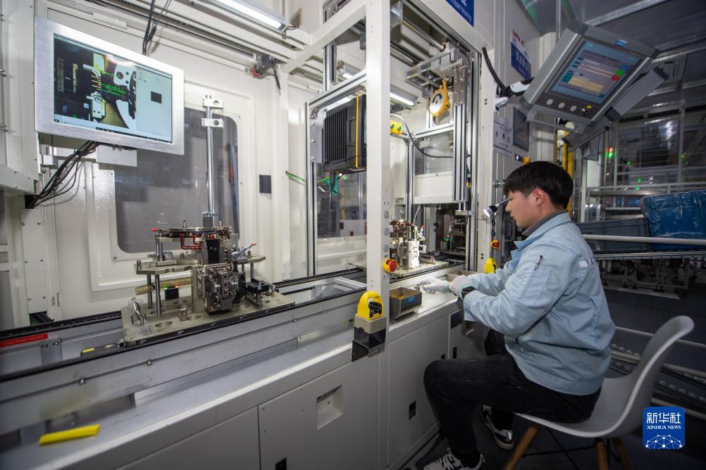 12月20日,工人在宁波峰梅新能源汽车科技股份有限公司生产线上工作。