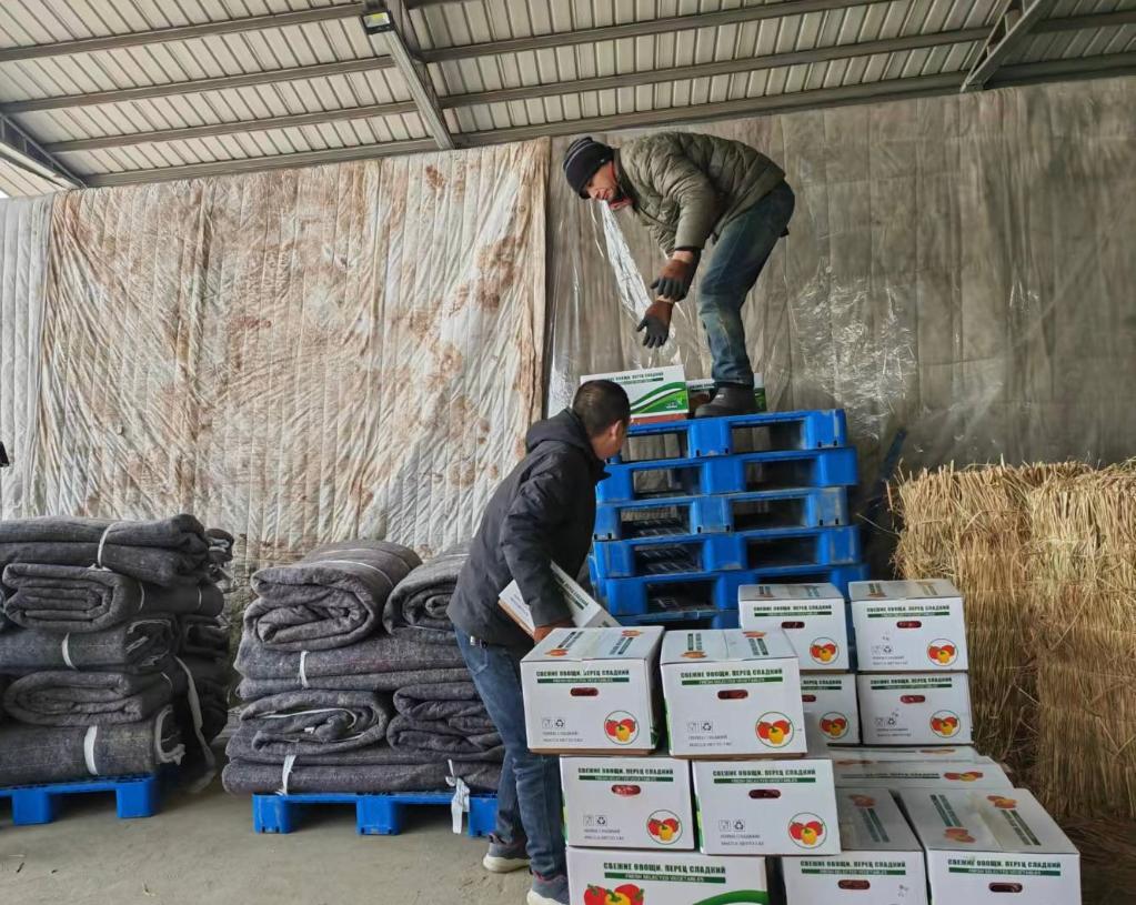 山东省寿光市东斟灌村菜农装卸彩椒。(寿光市委宣传部供图)