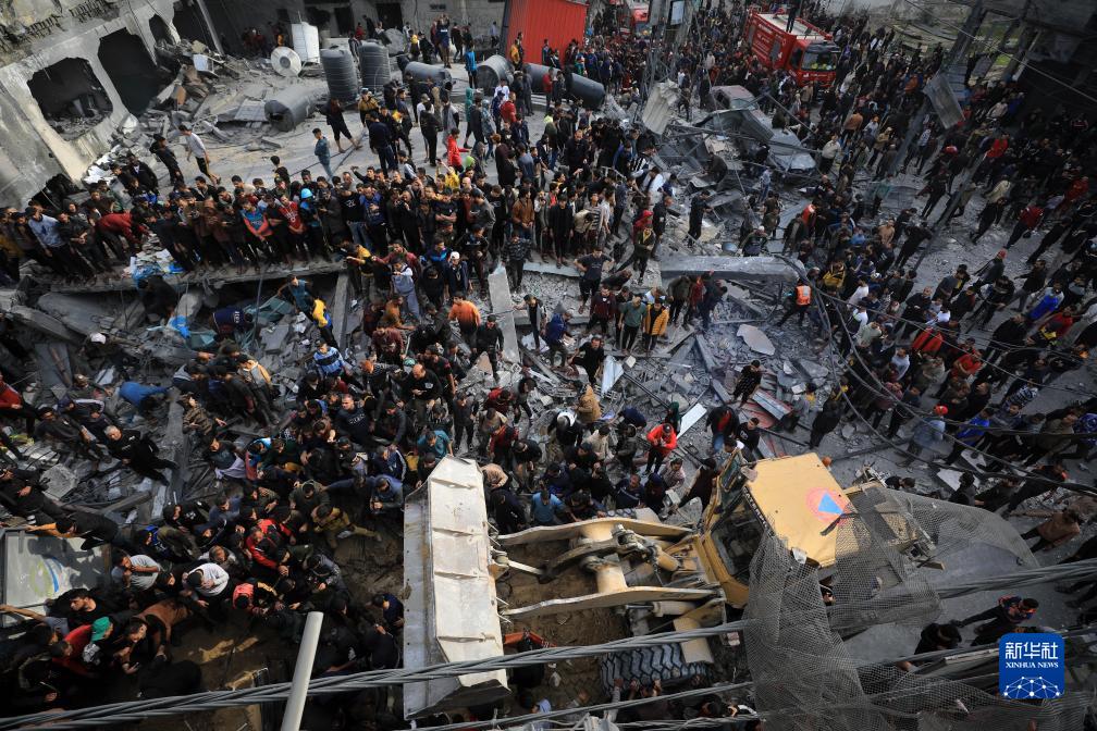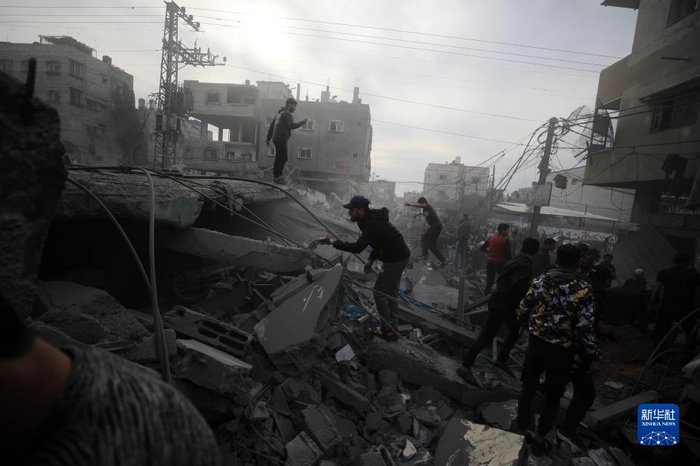 12月20日,在加沙地带南部城市拉法,人们在以军空袭后开展救援。新华社发(亚西尔·库迪摄)
