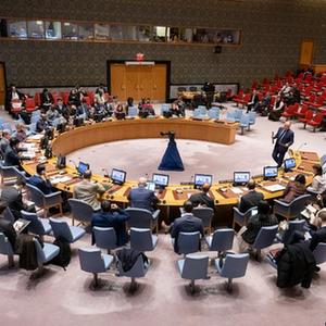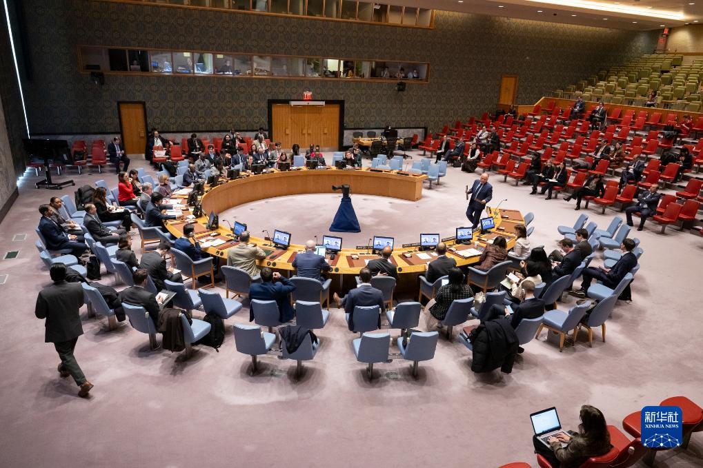 这是12月20日在位于纽约的联合国总部拍摄的联合国安理会会议现场。新华社发(联合国供图/曼努埃尔·埃利亚斯 摄)