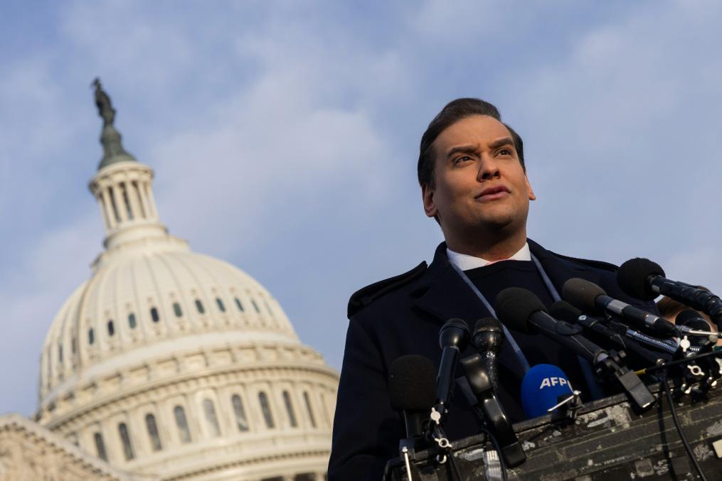 11月30日,乔治·桑托斯在美国华盛顿国会外举行的新闻发布会上对媒体讲话。新华社发(亚伦摄)