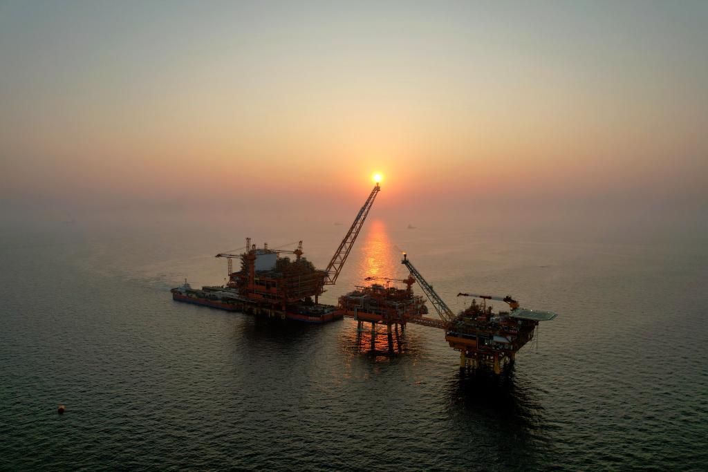 渤中19-6气田Ⅰ期开发项目于11月14日成功投产,标志着我国海上深层复杂潜山油气藏开发迈入新阶段。投产后,高峰日产油气超5000吨油当量。朝霞下,渤中19-6气田立于壮阔大海之上,曙光照耀,分外壮美。