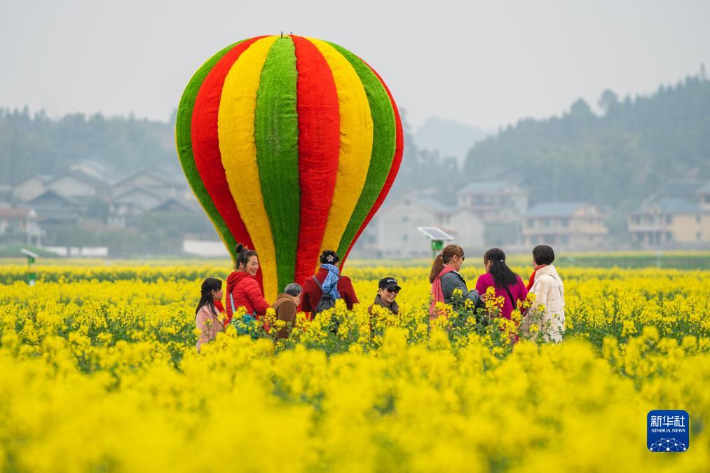 这是游客们在湖南省怀化市会同县堡子镇万亩油菜花海观光、打卡(2023年3月1日摄)。新华社发(张镭摄)