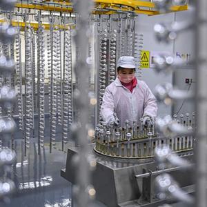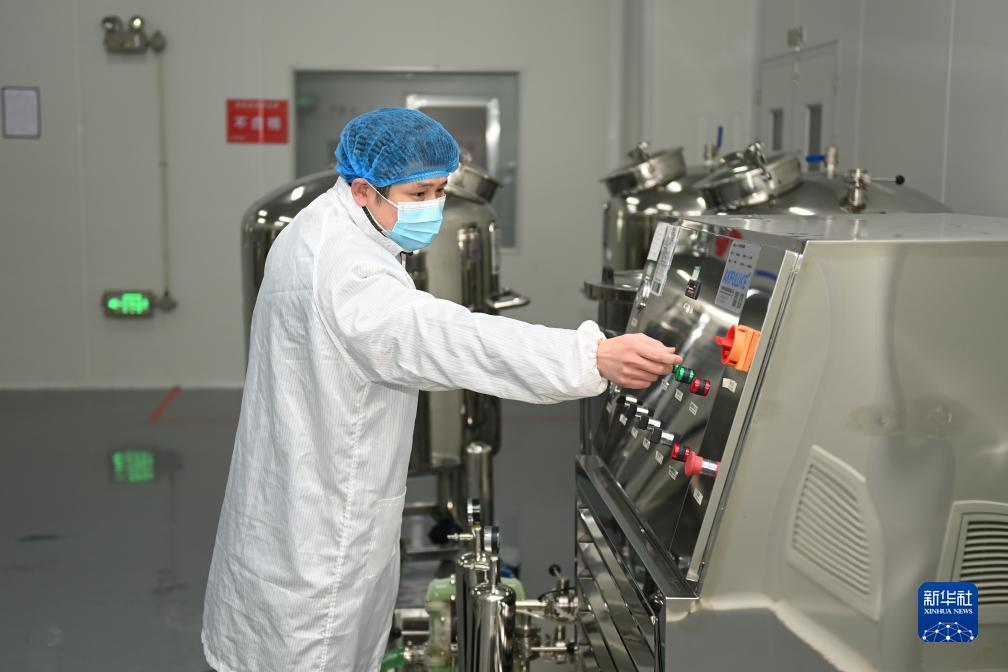 12月21日,工人在“美妆小镇”内一家生产香水的化妆品企业车间作业。