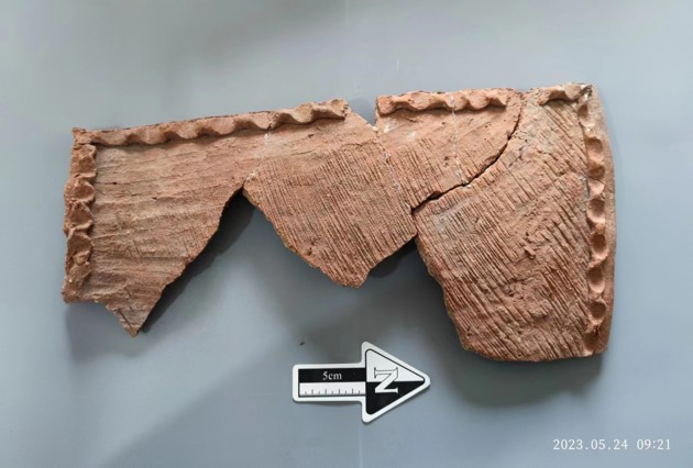 图为北阳平遗址考古出土的“瓦形器”残片。(受访者供图)