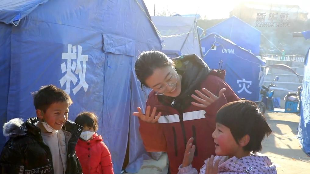 昨天,在积石山县大河家镇梅坡村,受灾群众有了“新房”; 在积石山县刘集乡阳洼村,甘肃省心理救援队的队员们正陪着孩子们做游戏。