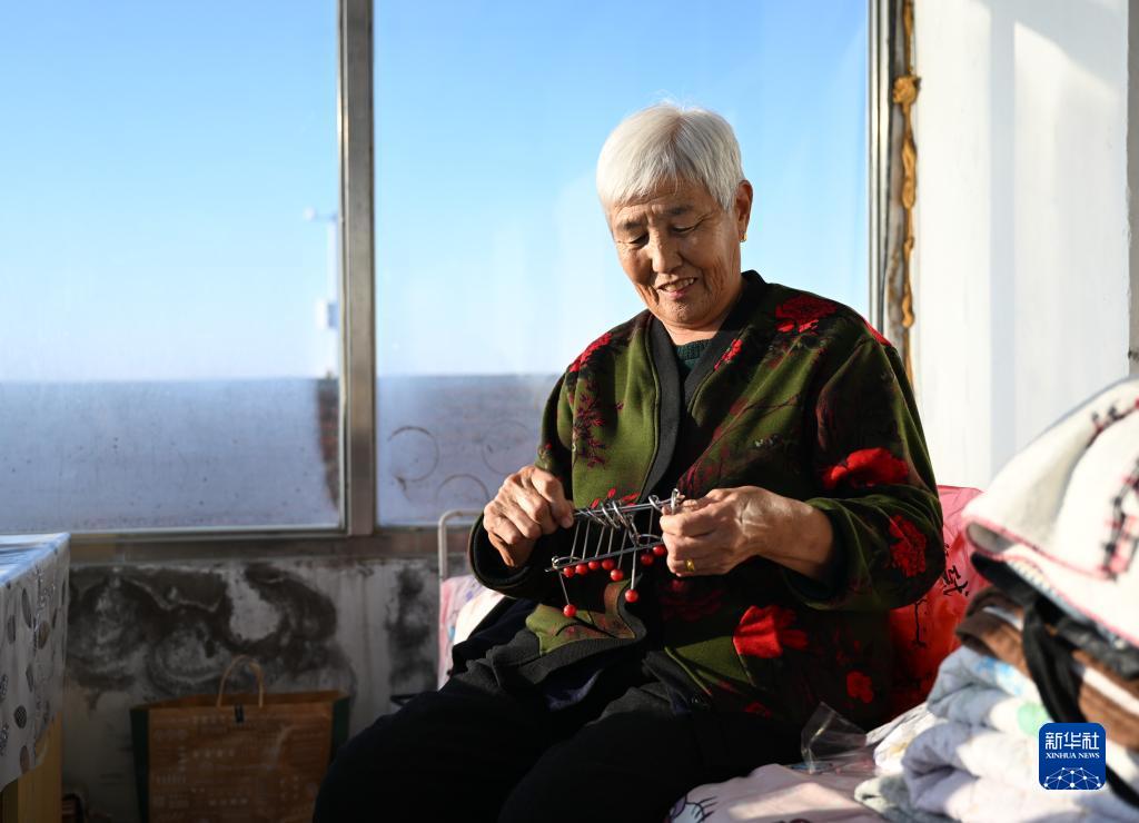 12月16日,额尔敦达来的母亲苏荣花拉在家中解九连环。