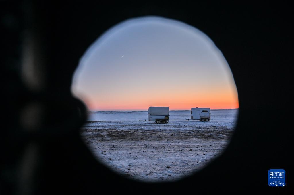 12月16日,夕阳下,两辆拖马房车停在额尔敦达来家的草场上。