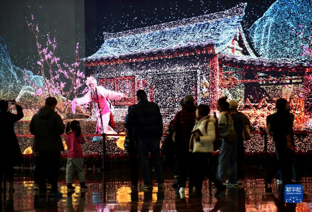 12月22日,观众在国家大剧院戏剧场入口观看裸眼3D大屏。