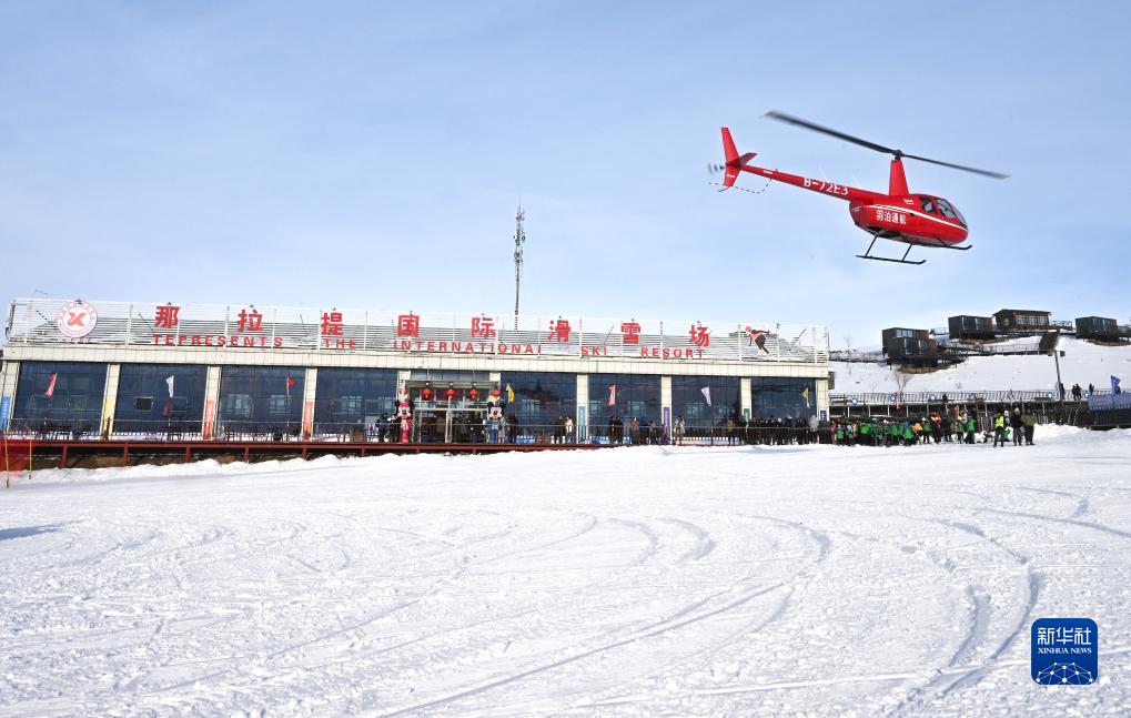 那拉提国际滑雪场内设置的直升机乘坐观景娱乐项目吸引游客体验(12月21日摄)。