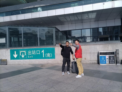 “大爷您好,我们是茉莉公益队的志愿者,我们来帮你提行李吧,您如果要去候车的话要走这边的手扶梯。” 志愿者小翁说到。