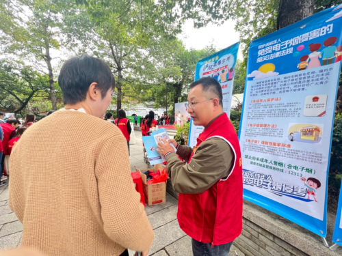 志愿者小易在街道组织的活动中为往来群众普及法律知识。温琳荔供图