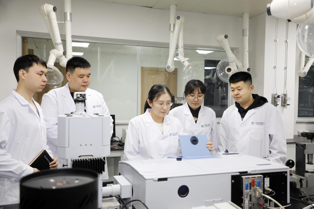 吉兴香(中)在实验室与同学交流实验进展。受访者供图