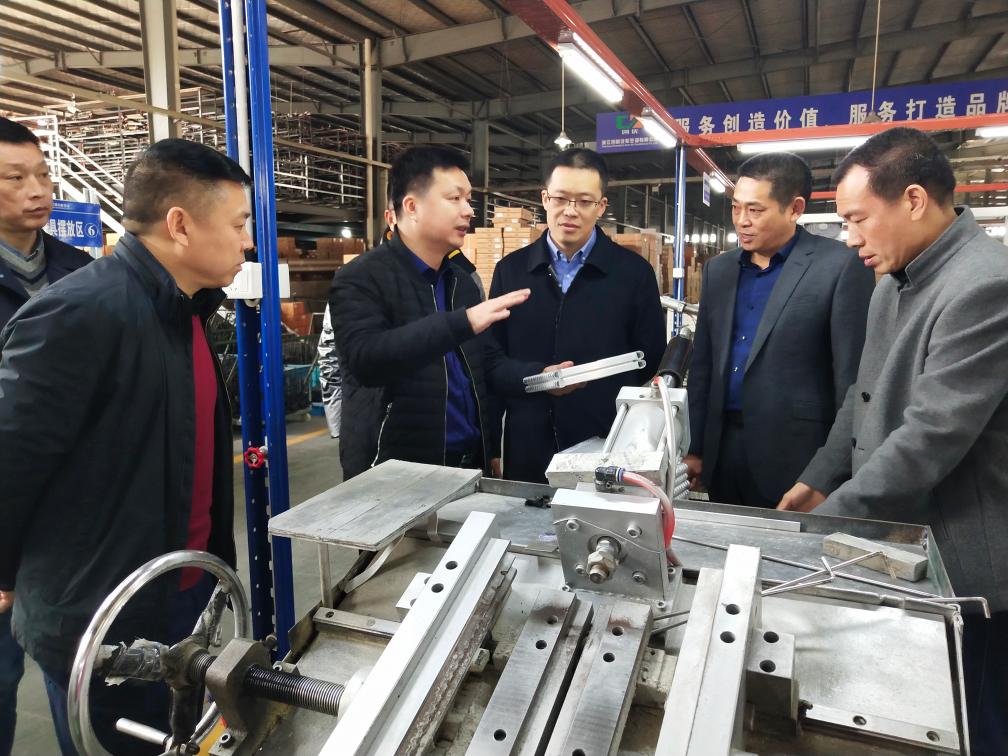 熊树生(左三)在龙泉市一家企业车间内介绍汽车空调冷凝器。受访者供图