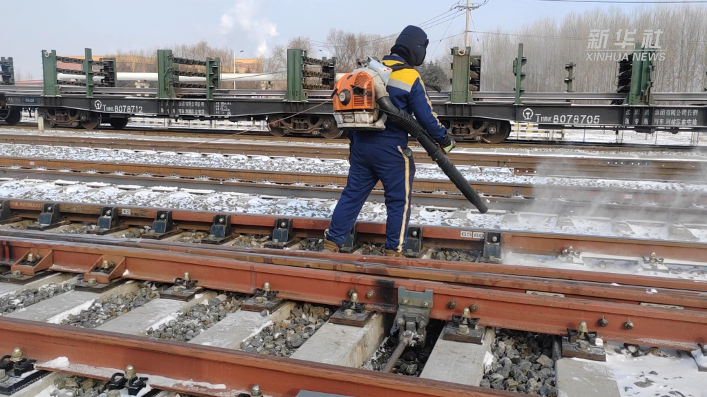 面对降雪,铁路部门开启电热道岔融雪装置,同时派出清雪作业团队分赴各车站进行除冰、除雪作业。