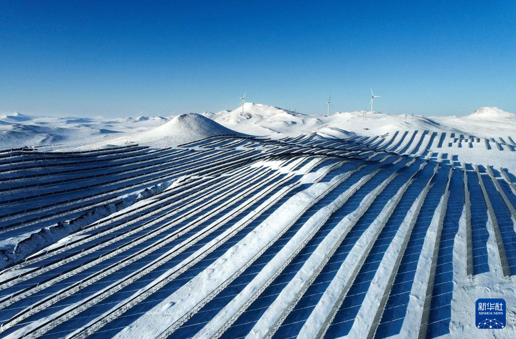 这是在内蒙古霍林郭勒市拍摄的霍林河循环经济示范工程风电光伏基地(2023年2月23日摄,无人机照片)。新华社发(王正 摄)