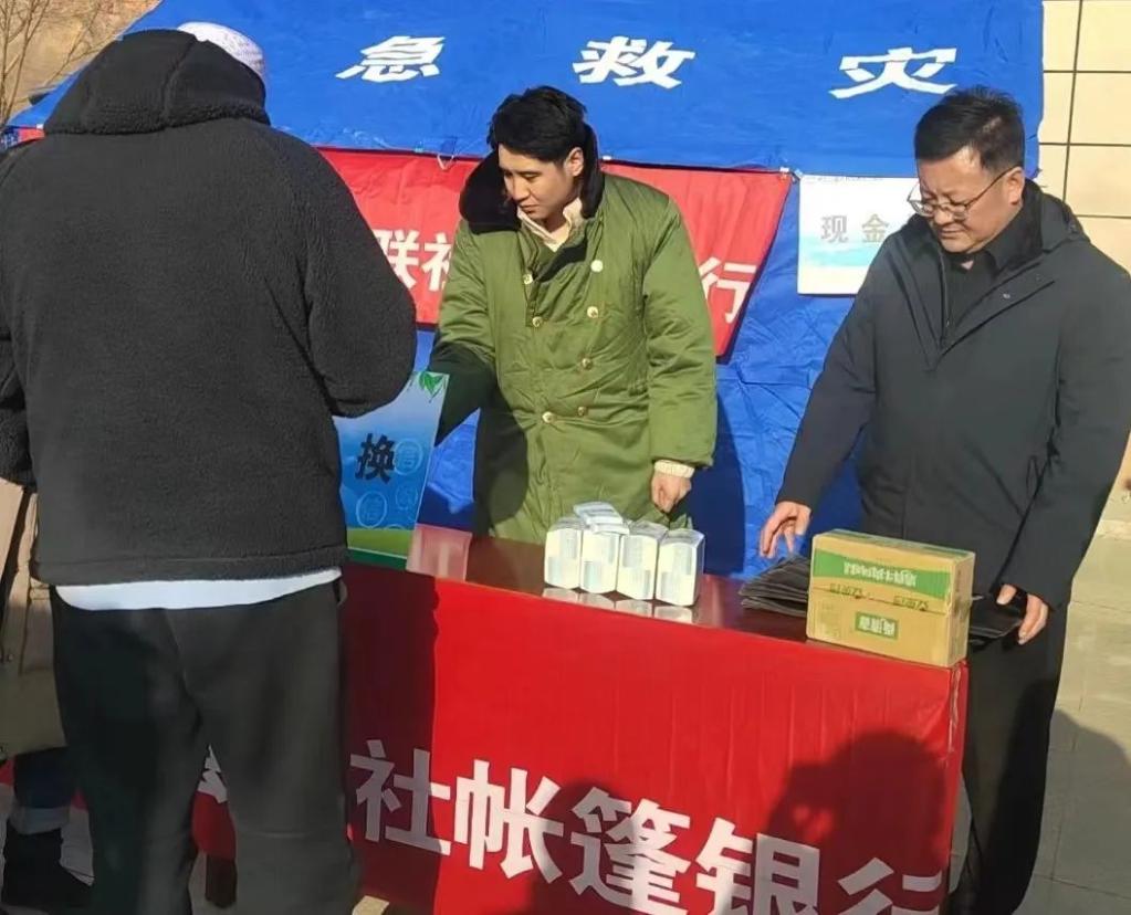 图为甘肃当地金融机构通过帐篷银行为群众提供现金服务。(中国人民银行甘肃省分行供图)