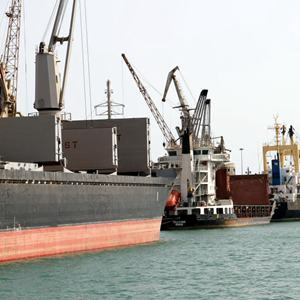 2019年5月14日,在也门荷台达港,货轮停在港口。新华社发